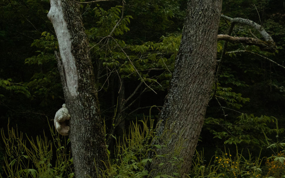 The work Hughes, a native of Eastern Kentucky, near Berea, KY, sentimentalizes the mystique, prophetic dreams, folkloric ideas attached, and the fear of identity loss and diminution of Appalachia through various multimedia and interactive pieces. Hughes' works communicate through visual and aural mediums, all having a quality of being both ephemeral and fleeting. A house falling in on itself is no longer a house, but instead a memory of a house and symbol of something soon forgotten.